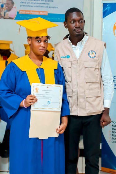 Cette cérémonie, organisée en présence de cadres du #Ministère_de_lÉducation_nationale et de UNICEF Haiti , marque une étape décisive dans la vie de ces jeunes, qui ont su, malgré des conditions parfois difficiles, persévérer et croire en leur potentiel.
