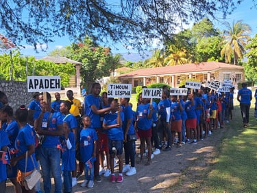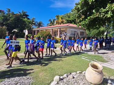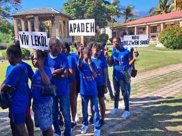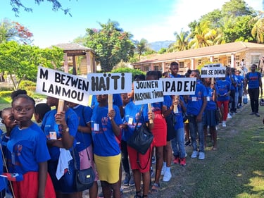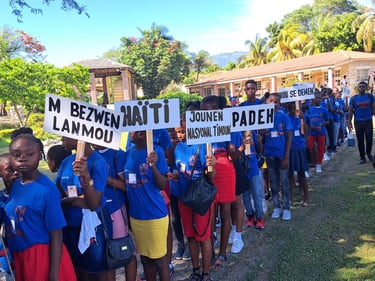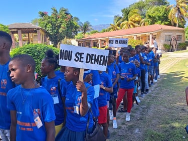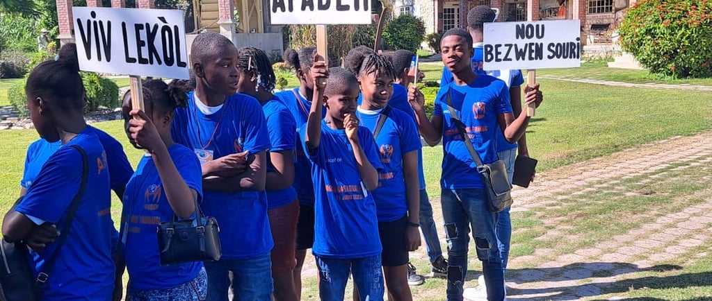 En effet , la journée a commencé par une marche où près de deux cent enfants venant de Croix-des-Bouquets, Cité Soleil et Tabarre ont foulé le sol avec des recommandations bien spécifiques : nou se demen , nou pa koupab , viv Lekòl ... Un moment de refléxion suivi d'une visite guidée au musée du Parc Historique. Ces activités ont permis aux enfants d'avoir une meilleure compréhension du pays, leur importance dans la société, également d'identifier l'impact de la crise actuelle sur leur vie.
