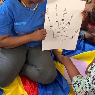 Au centre ville nous continuons avec les activités psychosociales (EAE), les espaces temporaires d'apprentissage (TLS) et les séances de sensibilisation sur droits et protection des enfants dans des sites de déplacés internes comme école Argentine Bellegarde, lycée Marie Jeanne et Gymnasium.