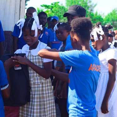 Dans le cadre de l’approche "Réponse Menée par la Communauté (RMC)" promue par OFAVA, APADEH a organisé une distribution de kits scolaires le mardi 8 octobre 2024 à Merger, commune de Croix-des-Bouquets.