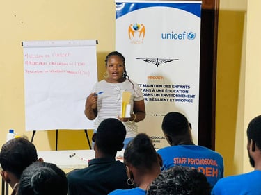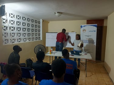 Aujourd’hui, nous avons organisé une session de formation dans nos locaux à Delmas, à l’intention de notre personnel venant de Port-au-Prince, Cité Soleil et Croix-des-Bouquets. Cette formation visait à renforcer leurs compétences et à leur fournir des outils concrets pour mieux intervenir sur le terrain.