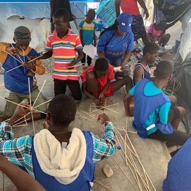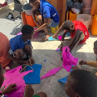 En cette circonstance difficile pour les enfants déplacés de Port-au-Prince, nous encourageons la créativité à travers divers activités comme fabrication de produits détergents ou atelier de cerf-volant.