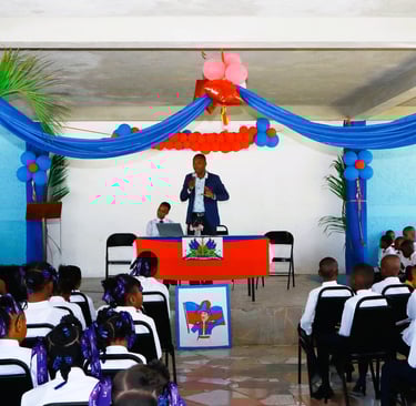 Au cours de la journée du 16 octobre, plus de 300 jeunes écoliers et écolières de différentes classes ont participé à toute une journée de conférence sur la révolution haïtienne, la place d'Haïti dans l'histoire du monde et la vie de Jean Jacques Dessalinnes. À la fin de la journée, les responsables de l'école ainsi que les élèves ont témoigné leurs satisfactions en offrant des présents au pasteur. Comme il le dit toujours, pasteur Dorismond croit qu'il est plus que nécéssaire que chaque haïtien et haïtienne connaisse son histoire afin de pouvoir aborder le présent tout en forgeant un future assuré.