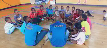 En effet, dans le cadre d'un partenariat avec l'Unicef, les agents de APADEH à travers ce site, interviennent à plusieurs niveaux : Activités psychosociales, formation professionnelle, sensibilisation sur la violence et les droits des enfants, espaces temporaires d'apprentissage, cours de rattrapage pour les élèves de 9ème année fondamentale et NSIV entre autres.